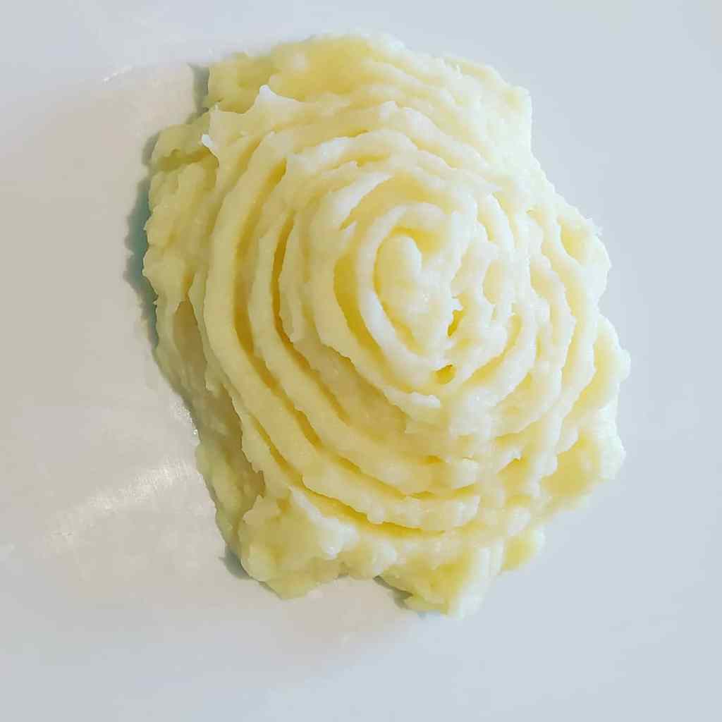 Ajouter un peu de lait en fonction de la consistance voulue, puis mettre le beurre, le sel et le poivre.
