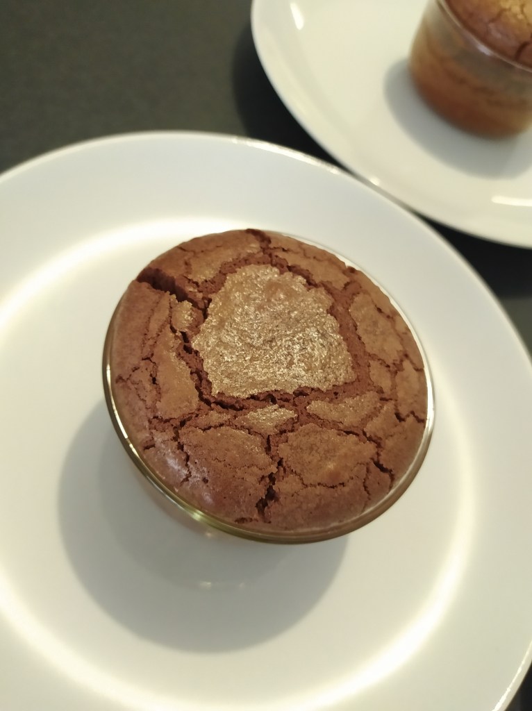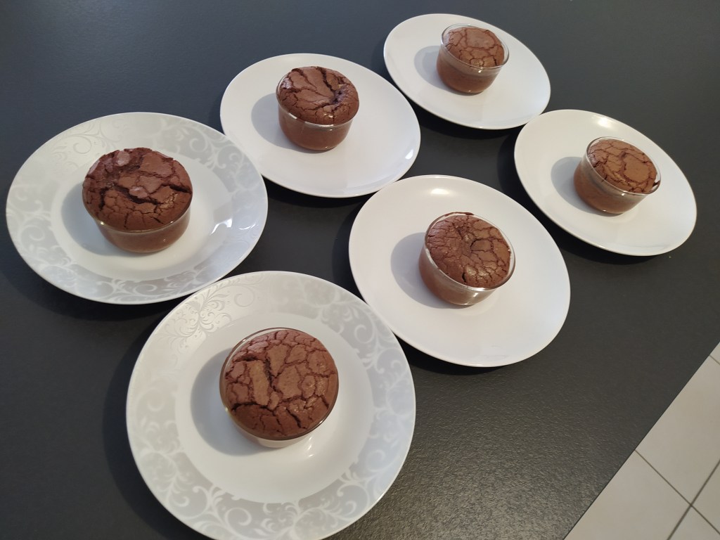 Remplir des ramequins à moitié de préparation, poser un carré de chocolat au centre et verser le reste de la pâte dans les ramequins.