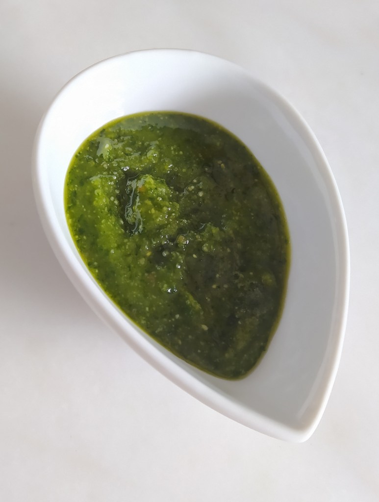 Bien mixer puis ajouter le parmesan et l’huile d’olive.