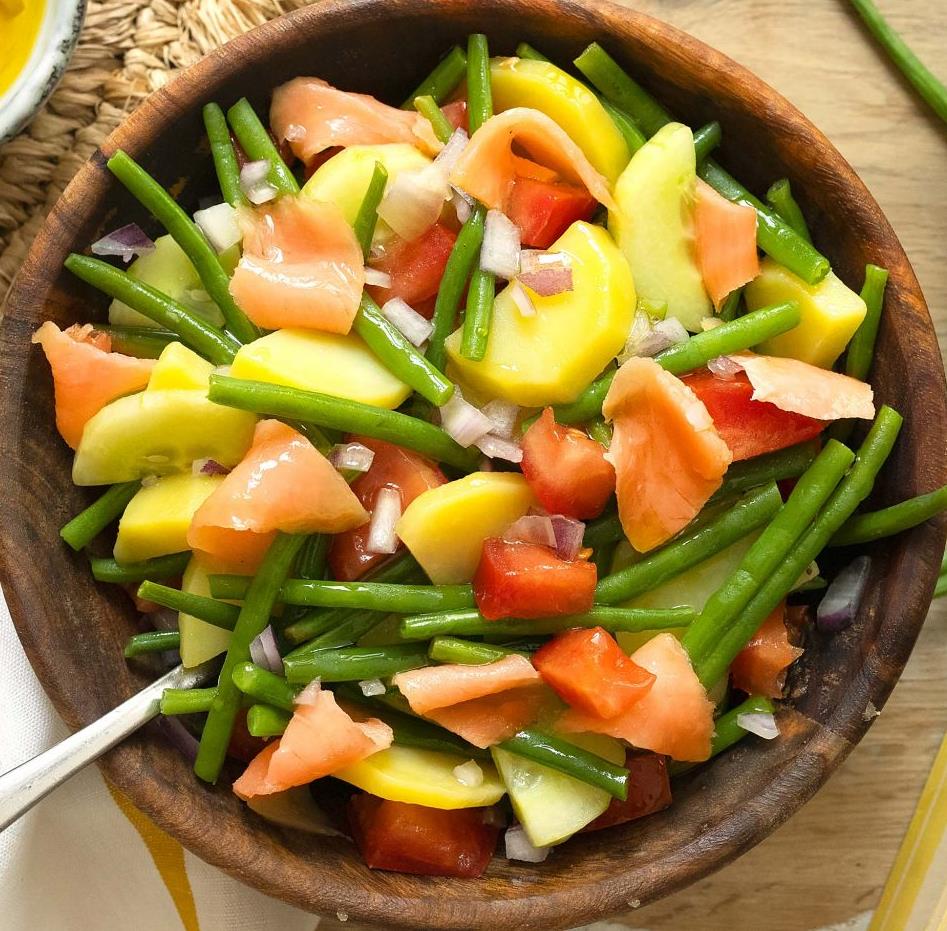 Lorsque les pommes de terre et les haricots verts sont cuits, égouttez les et placez au réfrigérateur pour les refroidir.